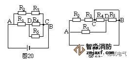 方案二:選取A—R1—D—R4—C—B為一條獨立支路,再分別安排R2、R3和R5,的位置,構成等效電路圖20。
