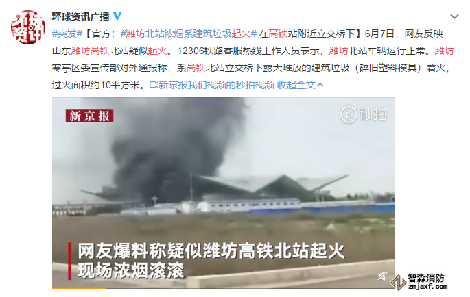 事后,濰坊寒亭區委宣傳部對外通報稱,系高鐵北站立交橋下露天堆放的建筑垃圾(碎舊塑料模具)著火,是一場典型的易燃物堆積著火事件。