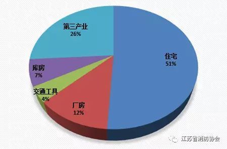 從近五年電氣火災發生的主要場所來看,場所類型及其占比分別為: