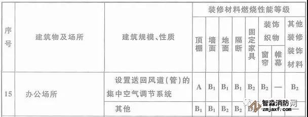 4、符合一定條件的辦公室,內部裝修材料的燃燒性能等級可在以上列表的基礎上降低一級,詳見《建筑內部裝修設計防火規范》:5.1.2、5.1.3、5.2.2、5.2.3、5.3.2等。