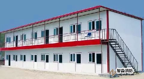 在施工現場生活區一般會搭建大量的供人員辦公、住宿的臨時用房,平時會有大量的現場工作人員活動及休息,一般這些臨時用房都不能按照正式的辦公樓、宿舍樓等進行防火設計,給施工現場消防安全帶來隱患。所以,本著既經濟合理,又能確保消防安全基本要求的原則,對臨時搭建的宿舍、辦公用房提出下列防火要求: